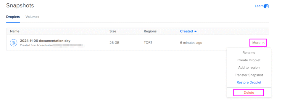 If you took DigitalOcean “backups” or “snapshots” to back up your instance before, they cannot be used to restore, after migration. You should delete them to save money. See the How to Backup Your Hubs Instance document for how to do backups now.